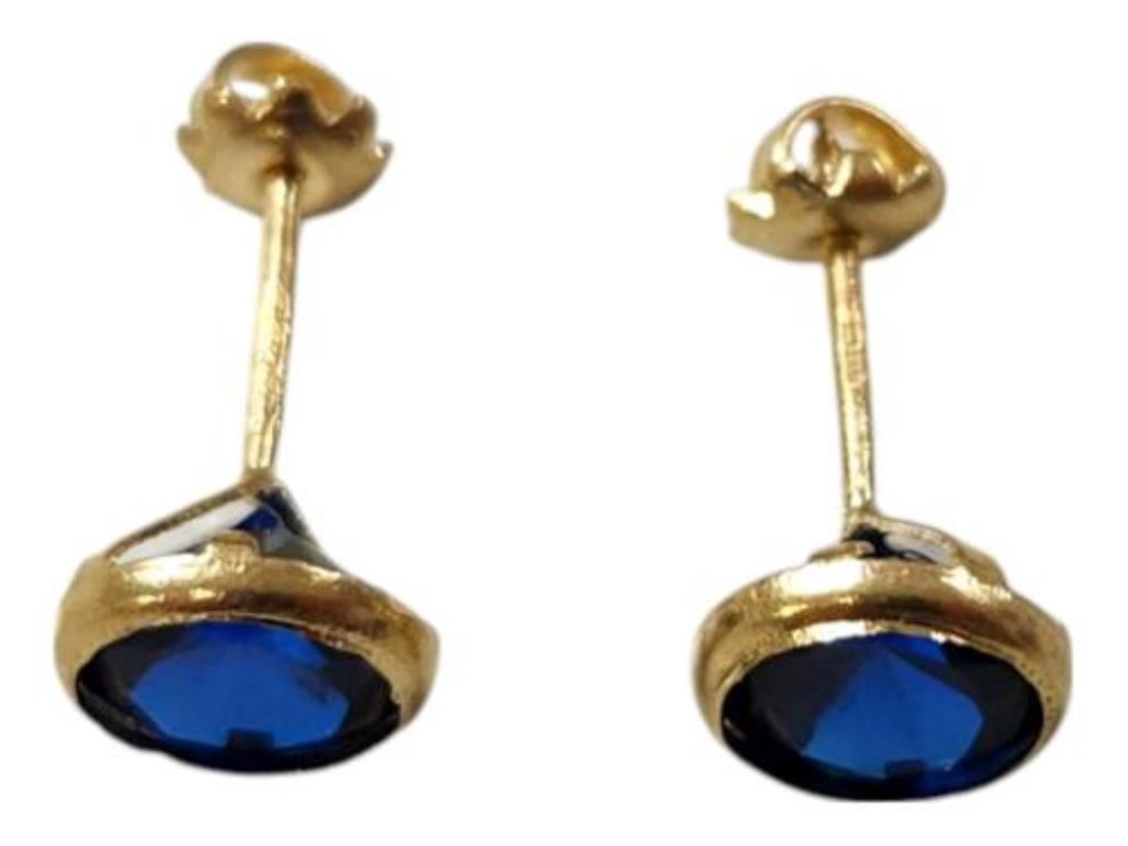 Par De Broqueles Con P.s. Azul Oro, 10 K, 0.50 Grs